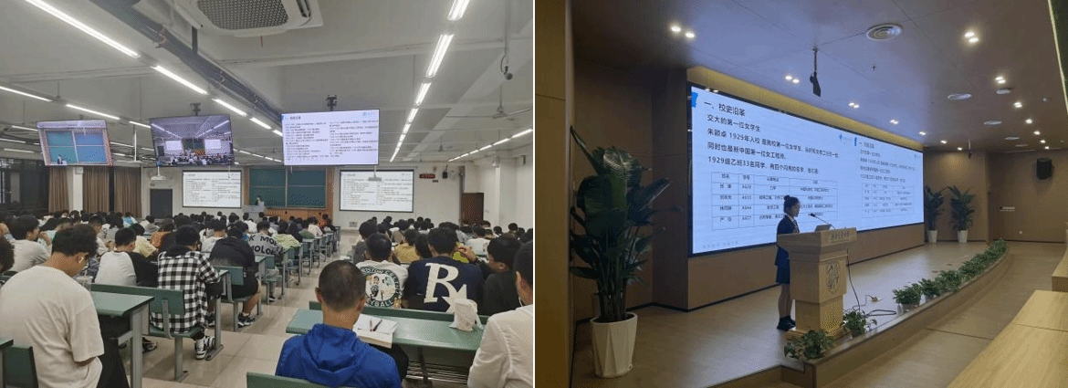 首先,大使团成员对校史校情进行了生动的讲解。讲解分为校史沿革和交大学风、校风、教风的形成两个部分。第一部分校史沿革,从学校办学地点的迁移,到学校名字的发展过程,再到对学校第一位女学生的介绍,让同学们全面了解到了学校的办学发展过程。而在第二部分,同学们在老校友的故事中品味交大精神,增强对学校的认同感和自豪感。