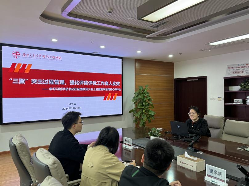为深入学习贯彻习近平总书记重要讲话和全国教育大会精神,推动党中央关于建设教育强国的重大决策部署落实落地,进一步凝聚学生工作队伍思想共识、强化使命担当、激发学习热情,2024年11月14日上午,澳门十大电子正规游戏网站学生工作组在电气馆X10212开展第二次集中学习贯彻全国教育大会精神暨学生工作专题会议。学校党委学生工作部副部长谢力、学院党委副书记邢晓鹏及学院辅导员参加会议。本次会议由邢晓鹏副书记主持。