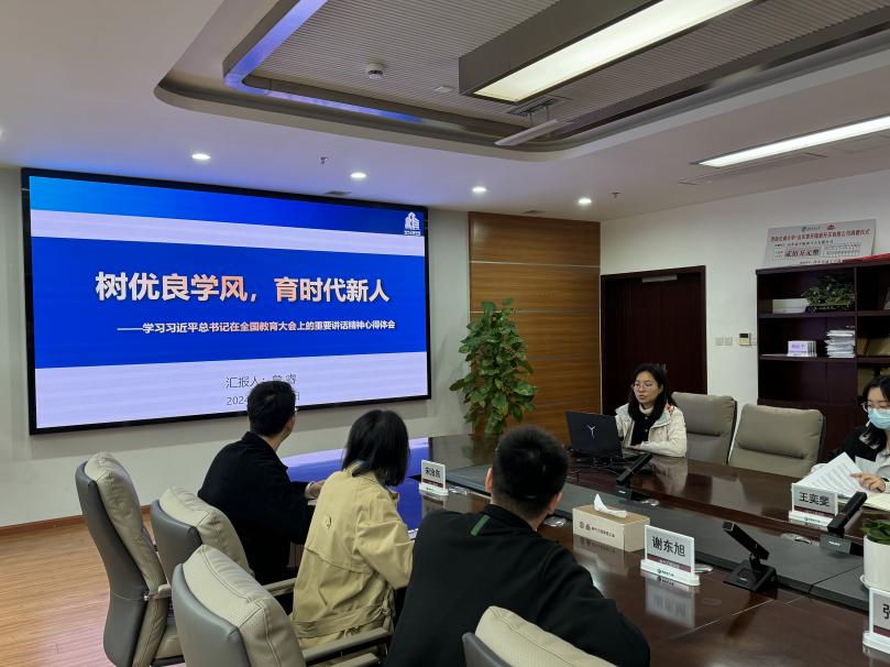 会上,学院学风建设专项工作负责人詹睿老师结合工作实际,以“树优良学风,育时代新人”为题,分享了学习习近平总书记在全国教育大会上的重要讲话精神心得体会。詹睿老师将大会提出的教育强国“六大特质”与辅导员工作实际相结合,围绕思政引领、榜样示范、日常管理、全员育人、升学深造等方面分享了实际工作举措和取得的工作成效,并提出关于加强学风建设的工作思考。