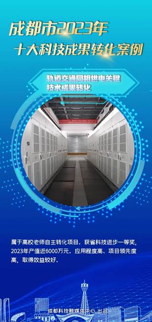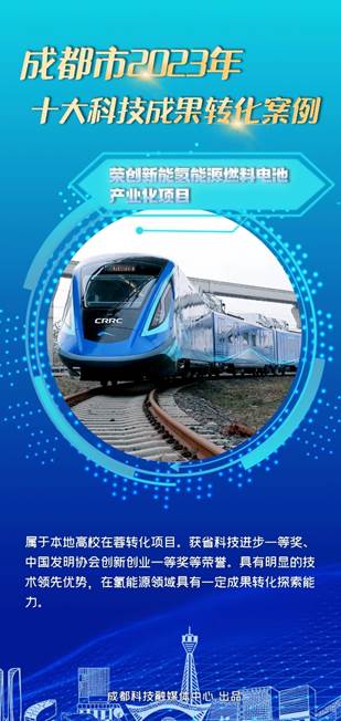 2024年3月14日,在成都市中试平台服务供需对接暨科技成果转化十大榜单发布会上,成都市2023年十大科技成果转化案例正式揭晓,澳门十大电子正规游戏网站共两项科技成果入选,分别是“荣创新能氢能源燃料电池产业化项目”和“轨道交通同相供电关键技术成果转化”。