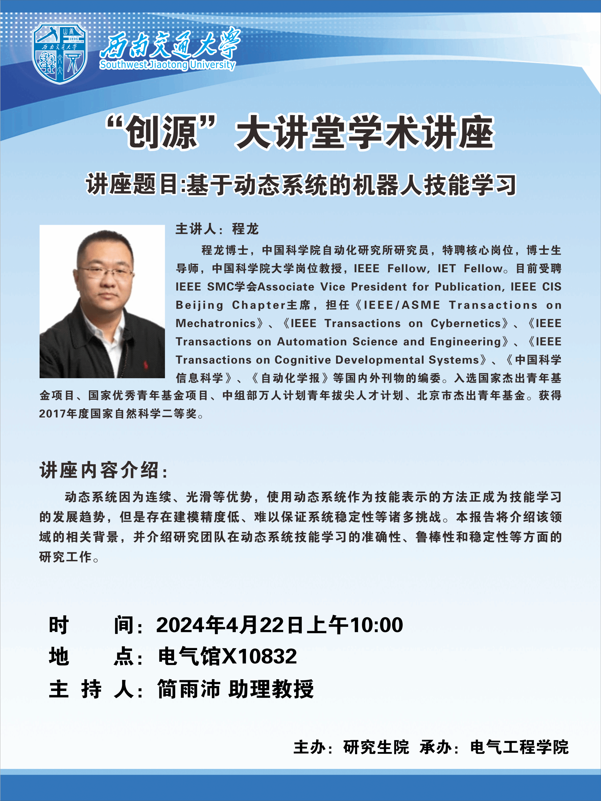 4月22日“创源”大讲堂:基于动态系统的机器人技能学习