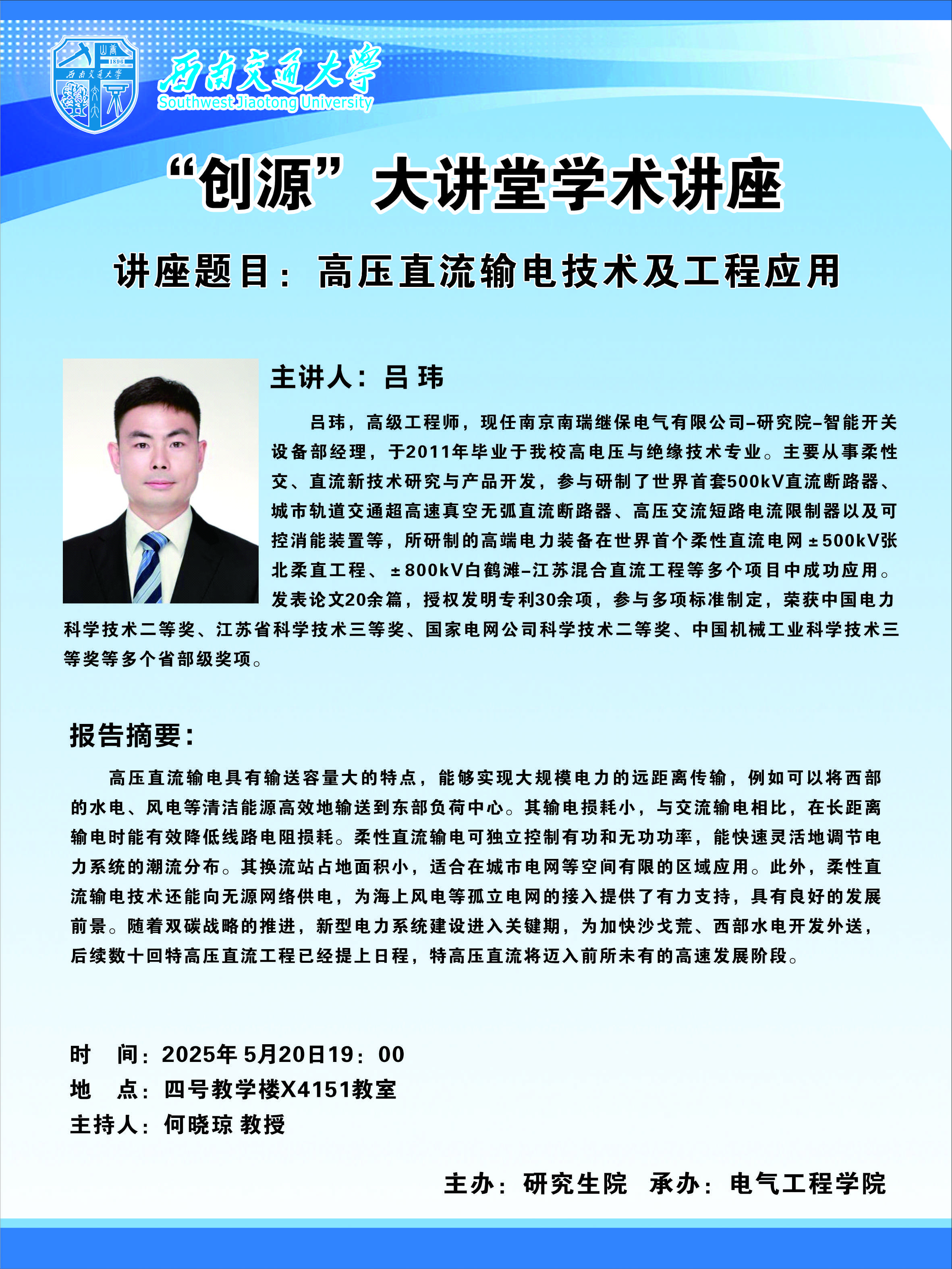 “创源”大讲堂研究生学术讲座:高压直流输电技术及工程应用