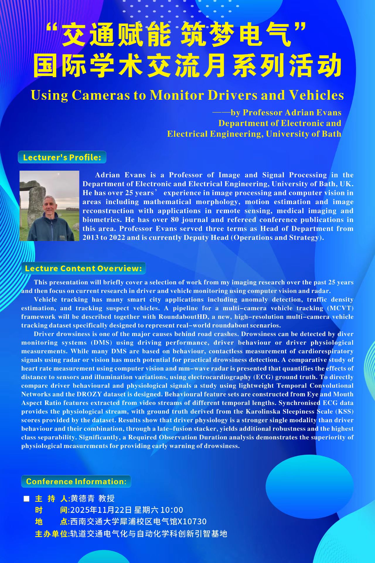 “交通赋能 筑梦电气”国际学术交流活动 Using Cameras to Monitor Drivers and Vehicles