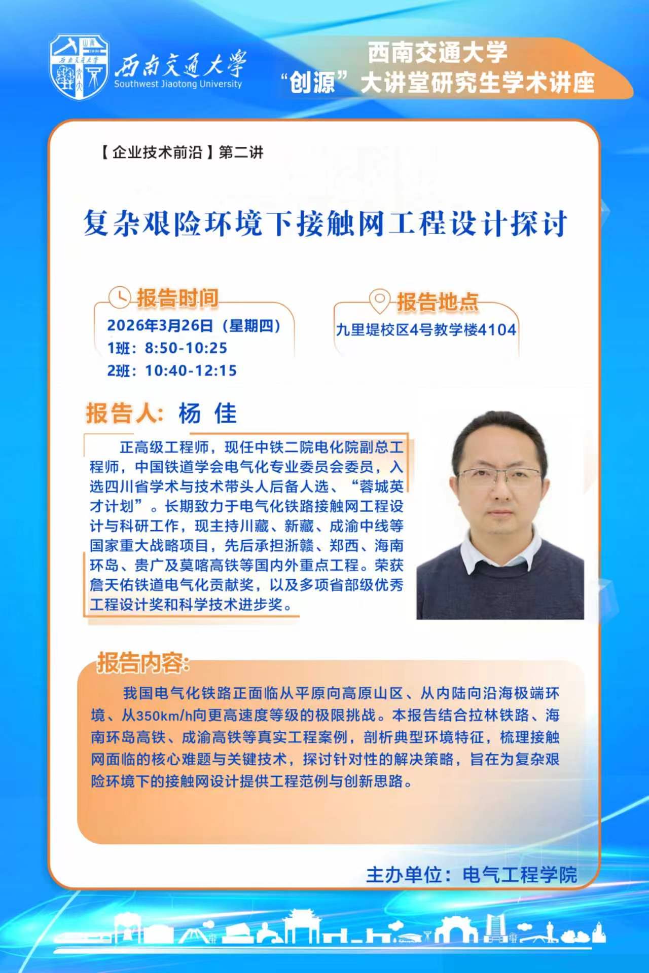 3月26日“创源”大讲堂:复杂艰险环境下接触网工程设计探讨