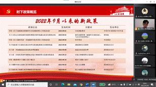 活动从电子科技大学范昊洋同学解读2022年9月以来国家发布的新政策开始,带领各党支部成员深入了解时事政策。