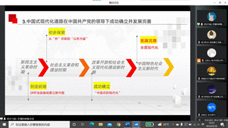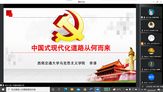 紧接着,澳门十大电子正规游戏网站马克思主义学院的李潘同志带来“中国式现代化道路从何而来”的主题分享。李潘同志从西方式现代化道路的介绍开始,阐述了中国式现代化新道路的发展历史,强调我们应该坚持和发展中国特色社会主义。