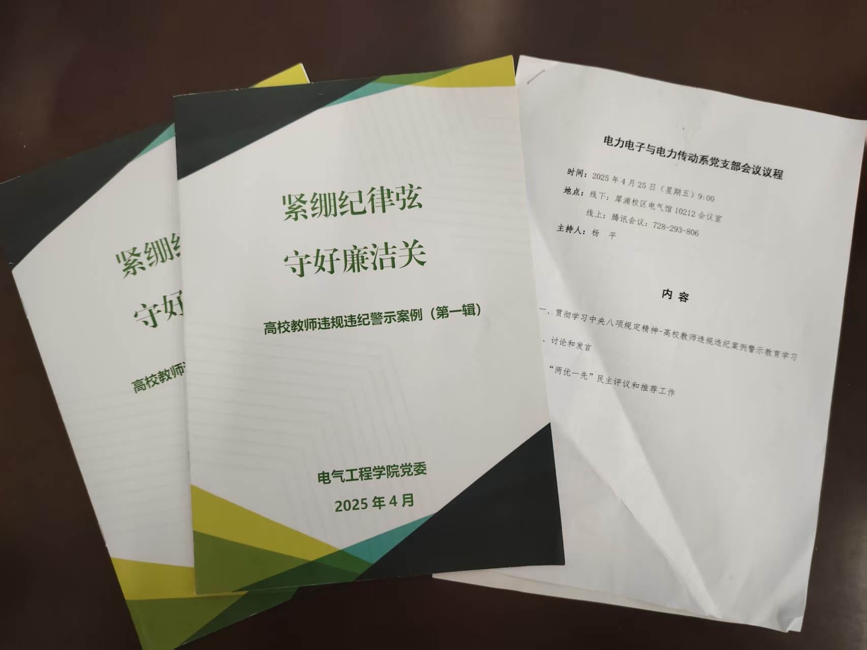 电力电子与电力传动系教工党支部认真组织开展本次主题党日活动。“一个人遇到好老师是人生的幸运,一个学校拥有好老师是学校的光荣,一个民族源源不断涌现出一批又一批好老师则是民族的希望”,引用习近平主席的重要讲话,党支部书记杨平同志主持开展了“紧绷纪律弦,守好廉洁关”高校教师违规违纪案例警示教育学习。