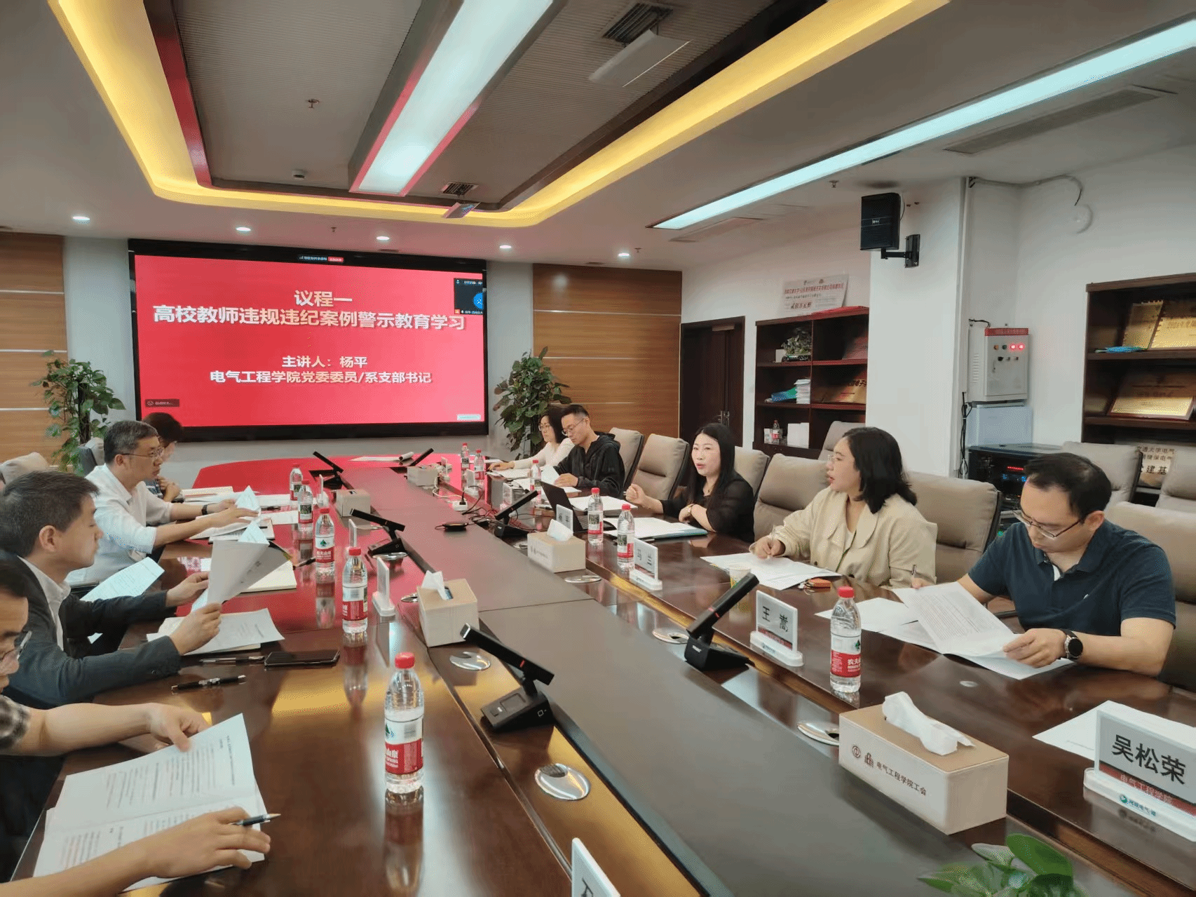 康国政副校长与党员老师们共同全程参与了学习,他对本次党支部活动的形式和内容给予了肯定。康校长说到,教师的天职就是教书育人,只有自己一身正气、遵章守纪,才能更好地言传身教。而作为党员教师,应该时刻牢记底线意识,不该说的话坚决不说,不该出现的场合坚决不去。也要加强对学生的学术诚信教育,让学生从一开始就树立学术道德规范,要把那些不严谨的态度、不诚信的想法扼杀在萌芽状态。对于师生的关系处理上,不能只管学生的学术,要全方位从学生生活、思想、家庭等去了解学生,关心学生,因材施教,才能更好地育人成才。最后,康校长也提出电气学院党委和各支部可以多开展一些这样的警示活动,做到警钟长鸣。