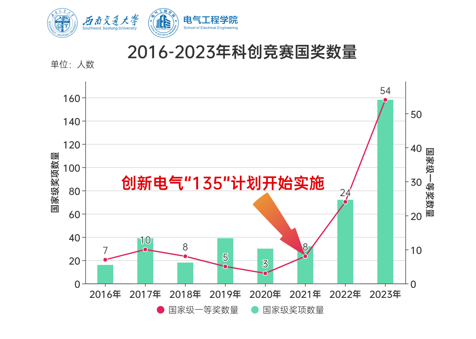 2023年6月-8月,全国A类学科竞赛相继开展全国总决赛,电气学院师生奔赴全国各地,在国赛现场过关斩将,勇夺佳绩:十大电子正规游戏官网2023年A类学科竞赛共斩获国家级一等奖22项(全校共60项)、54人次,二等奖30项(全校共79项)、49人次,三等奖35项(全校共105项)、55人次,省部级奖项获奖人数达295人次,国一获奖数量、省部级奖项以上获奖总数量位居全校第一,创学院科创竞赛历史最好成绩!