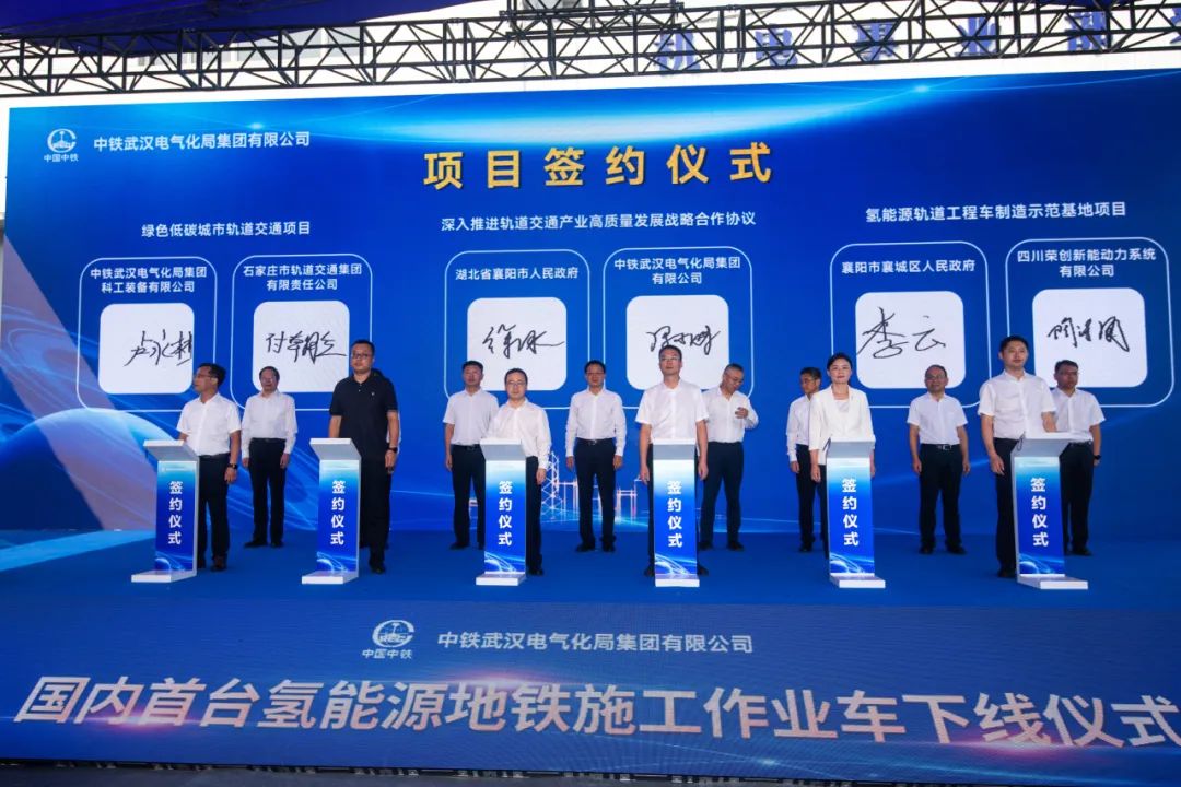 与会领导对氢能源作业车成功下线表示祝贺,并签订项目合作协议。与会领导表示,作为国内首台氢能源地铁施工作业车,该车对于中国城市轨道交通绿色城轨建设的创新发展和转型升级有着重要意义。校企政三方将继续加强合作,与业内单位深化交流,进一步加强成果转化,提高核心竞争力,为高校、企业和地方高质量发展作出积极贡献。
