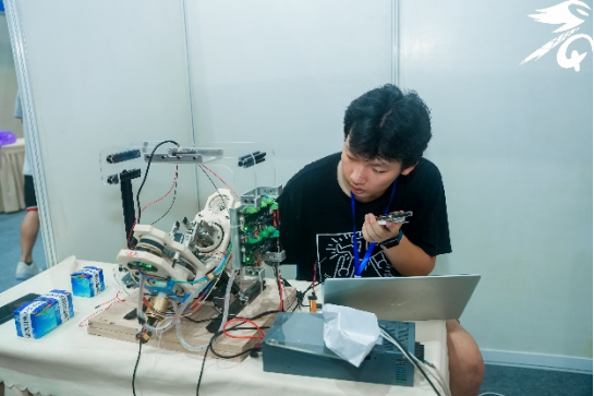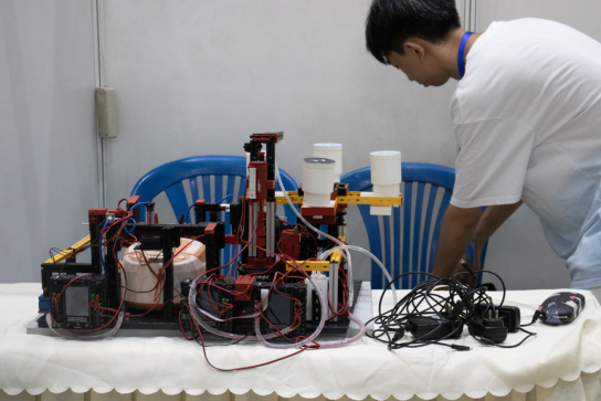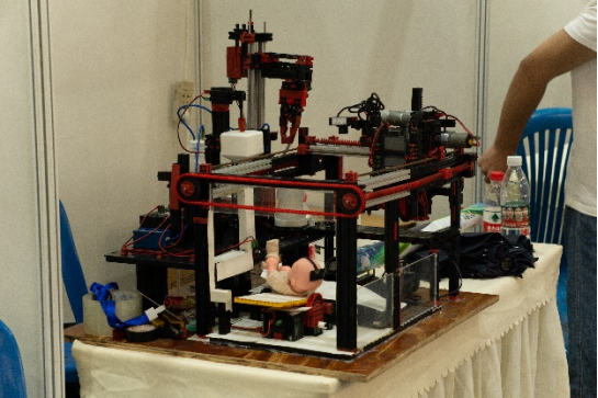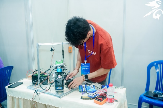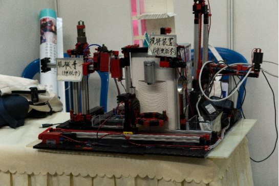 实物组参赛作品有通过云端管理的旋转式家庭交互智能衣柜,有洗发废水能循环使用的家用智能洗头机,有以科技传承历史的专业采耳耵聍处理器,有传统文化与人工智能开创性结合的自主研磨机械臂,有基于人机交互的智能鞋柜,有家用防老人走失监护设备,也有基于语音交互的智能移动家庭陪护机器人......各队伍通过在展位张贴海报、播放视频、现场演示等方式展示作品,尽显参赛者的创新思维与动手能力。