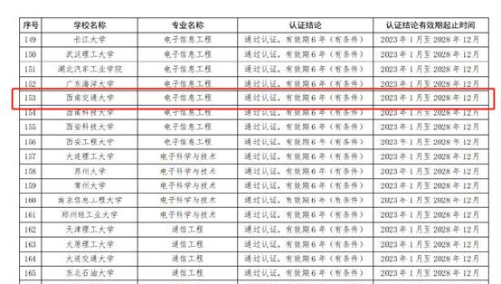 2023年6月28日,中国工程教育认证协会发布了全国441个专业认证结论,澳门十大电子正规游戏网站电子信息工程专业顺利“通过认证,有效期6年。认证结论有效期自2023年1月至2028年12月”。