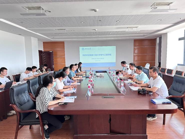 为加强两校之间的沟通与联系,推动文职人员遴选招聘工作,5月29日14时,海军工程大学澳门十大电子正规游戏网站一行到学院开展交流座谈。海军工程大学澳门十大电子正规游戏网站某教研室主任甄洪斌,课程团队负责人于飞、杨律,实验室张正康以及学院干事张佳栋;澳门十大电子正规游戏网站院长何正友、副院长陈民武、电力工程系副主任张血琴、电力电子与电力传动系副主任/《电机学》课程教师葛兴来、电力电子与电力传动系副主任王嵩、《电力电子技术》课程教师沙金、学生支持办公室主任张婷婷、教学秘书李砚玲参加会议。陈民武副院长主持会议。