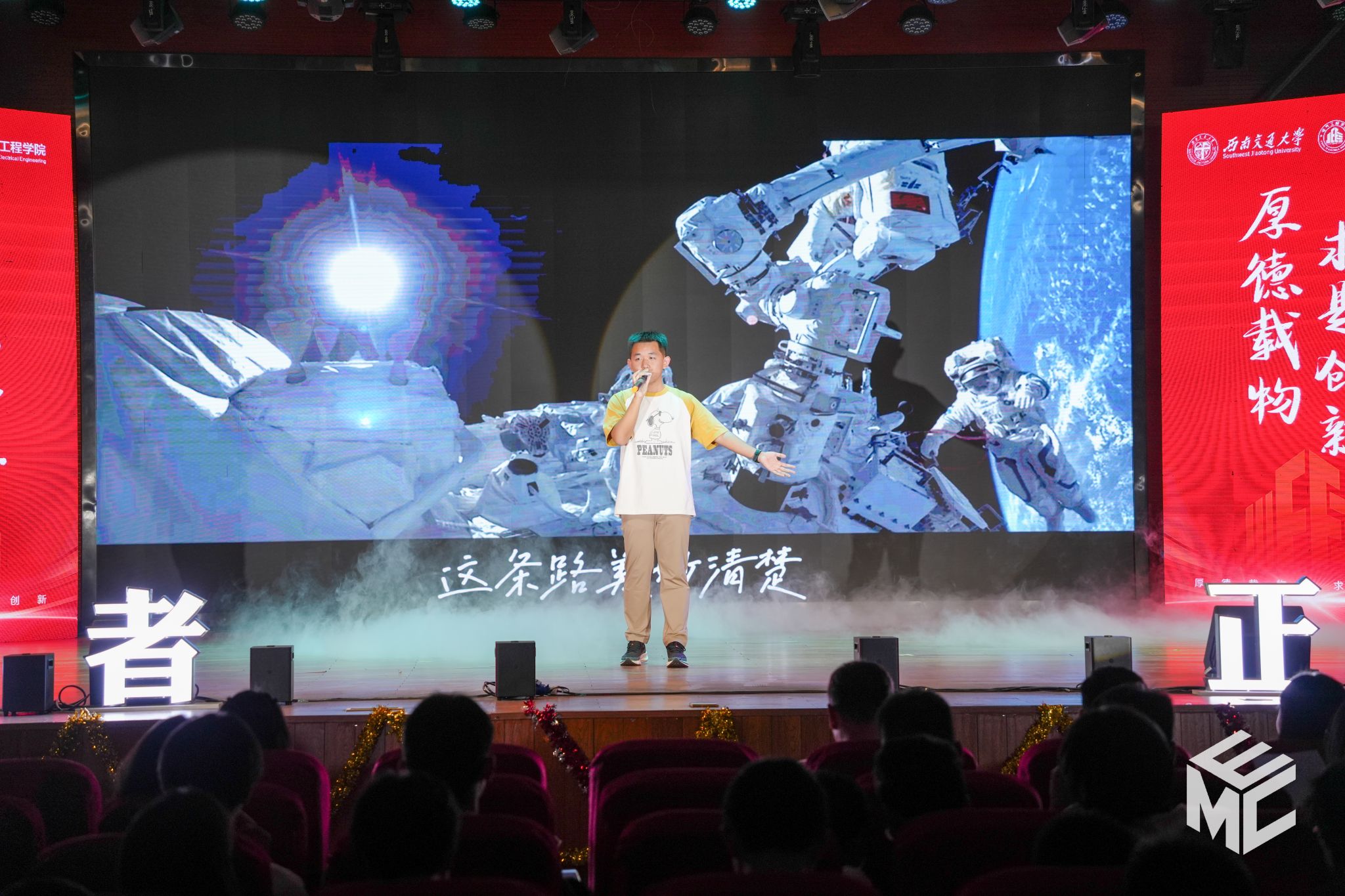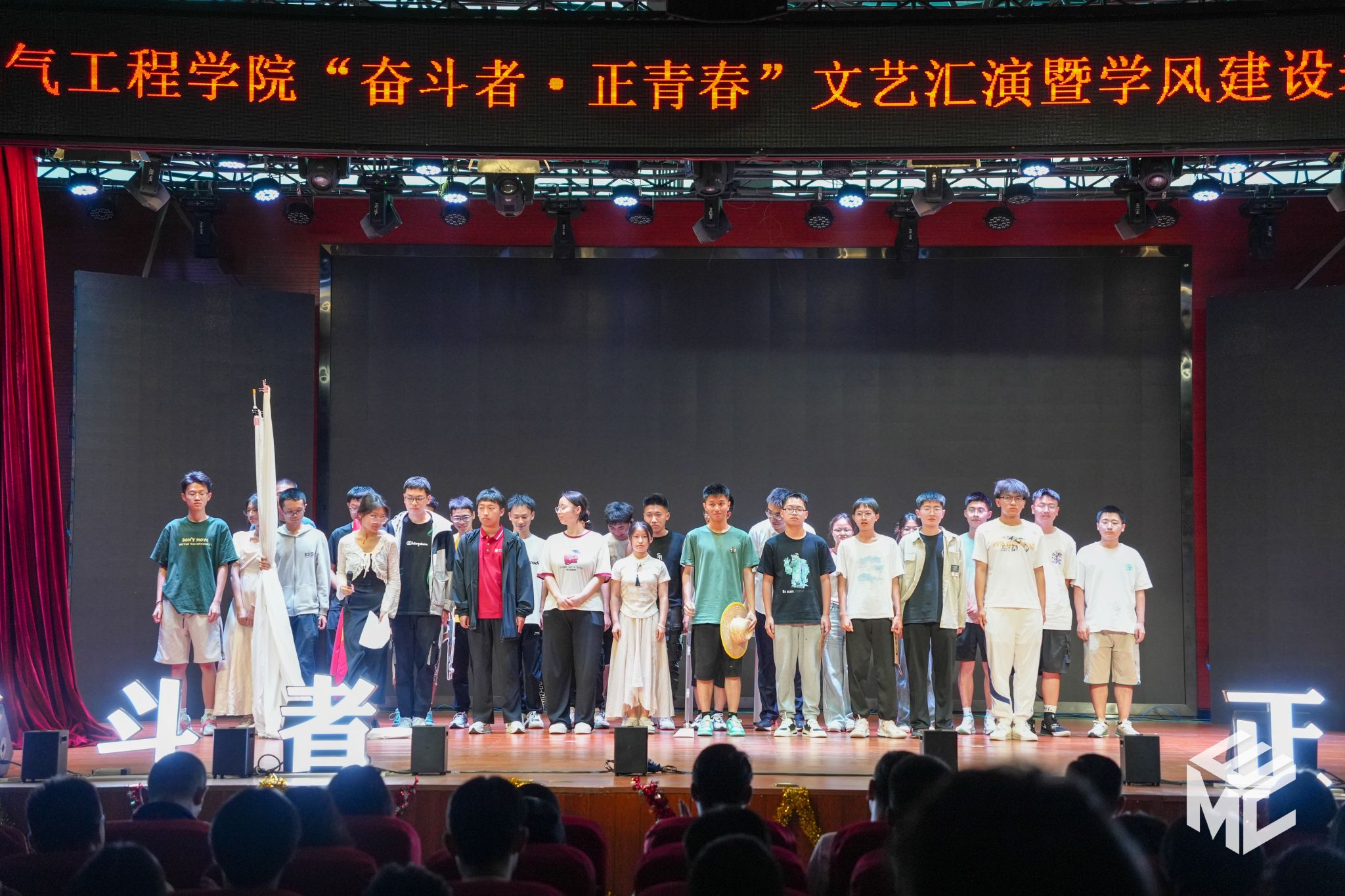 文艺汇演的第一篇章"星火传梦·筑梦前行"在大合唱《有我》中拉开帷幕。青年们用昂扬的歌声,展现了新时代青年的蓬勃朝气。歌曲《追寻》、《崇拜》、《始终》,舞蹈《热辣青春》,乐器合奏《少年》,情景剧《我的名字》,用深情饱满的歌声、轻快自信的身姿、真情实感的演绎,展示了青春的多姿多彩,以及追梦路上的坚持不懈。