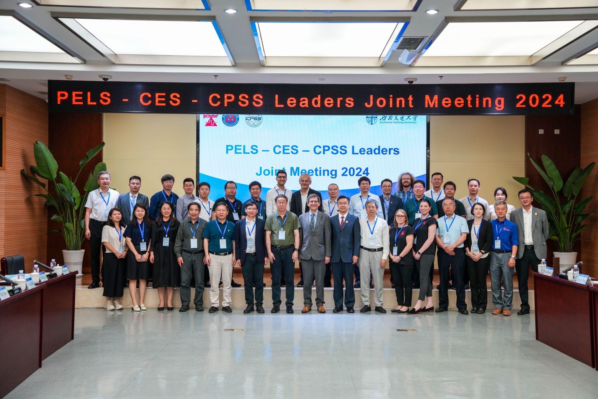 2024年5月17日,IEEE 电力电子学会(PELS)、中国电工技术学会(CES)与中国电源学会(CPSS)领导人联合会议在澳门十大电子正规游戏网站犀浦校区综合楼148会议室举行。IEEE PELS主席Brad Lehman,CES副理事长徐殿国,CPSS理事长刘进军,澳门十大电子正规游戏网站副校长康国政、何正友,IEEE PELS的前任主席 Frede Blaabjerg、Liucheng Chang,CPSS监事长、IEEE PELS副主席徐德鸿等三个学会30余名领导专家出席会议。本次会议由CPSS青工委主任、澳门十大电子正规游戏网站宋文胜和IEEE PELS前任主席 Liucheng Chang教授主持。