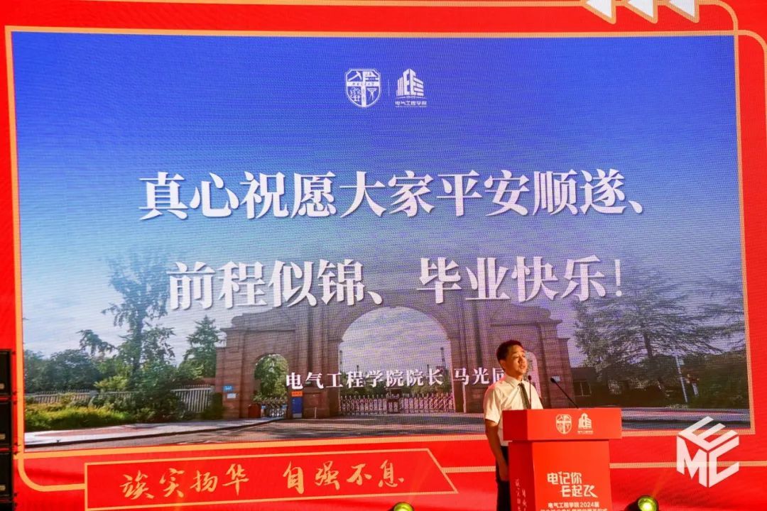 马光同院长以“把握主动,奔赴未来”为主题发表讲话,向毕业生们送出祝福。马光同院长总结了近年来学院取得的成就,为所有电气学子取得的优异成绩点赞,并寄语身处大发展大变革大调整时代的青年学子,要在变化的环境中把握主动,奔赴未来: