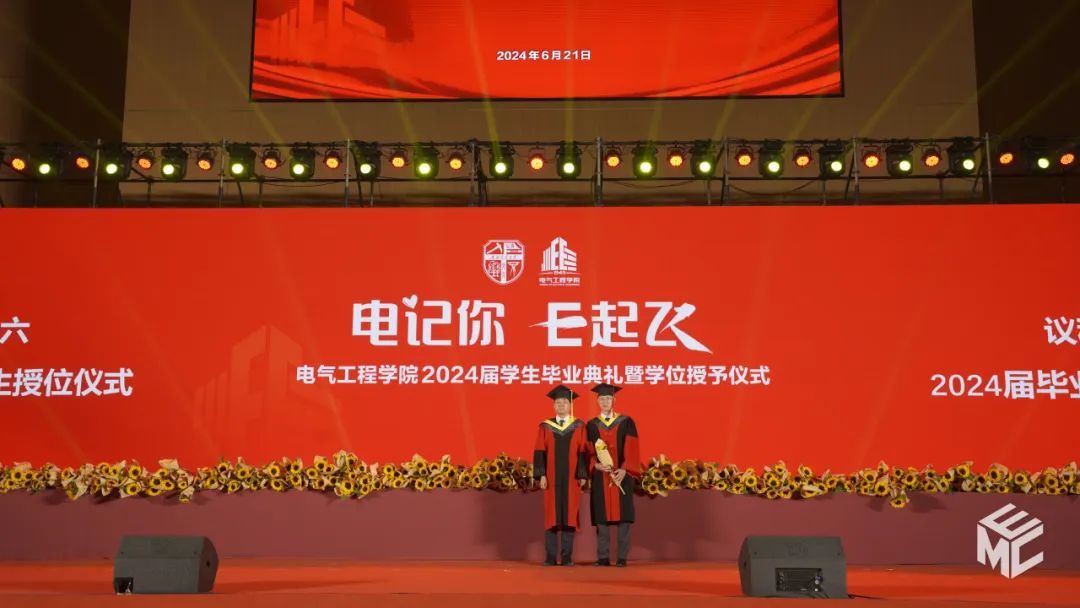 首先,教师代表2020级电气10班班导师李勇老师回顾四年来与同学们一起经历的坚持与获得的成就,总结了几年来电气学子的成长,并为全体毕业生送上寄语。在面对挑战时勇敢拥抱变化,用知识和能力为社会贡献自己的力量。母校的大门永远向交大学子们展开,不论何时,母校永远欢迎学子们回来。