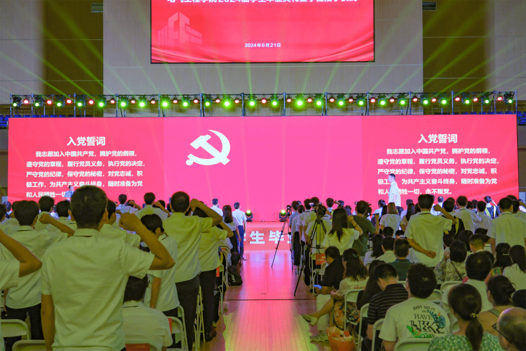 接着,学院本科2020级第五党支部书记齐璟元带领全体党员重温入党誓词,面向党旗,庄严宣誓。铿锵有力的宣誓声响彻典礼会场,每一位党员都将牢记入党誓词,坚守初心、担当使命,始终做到初心如磐、使命在肩。宣誓仪式结束后,全体起立,《国际歌》慷慨激昂,响彻会场。