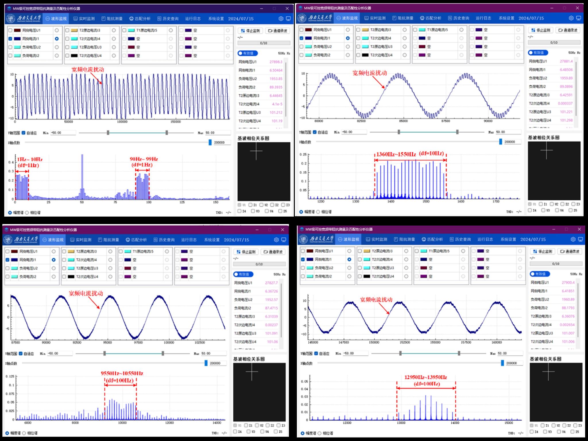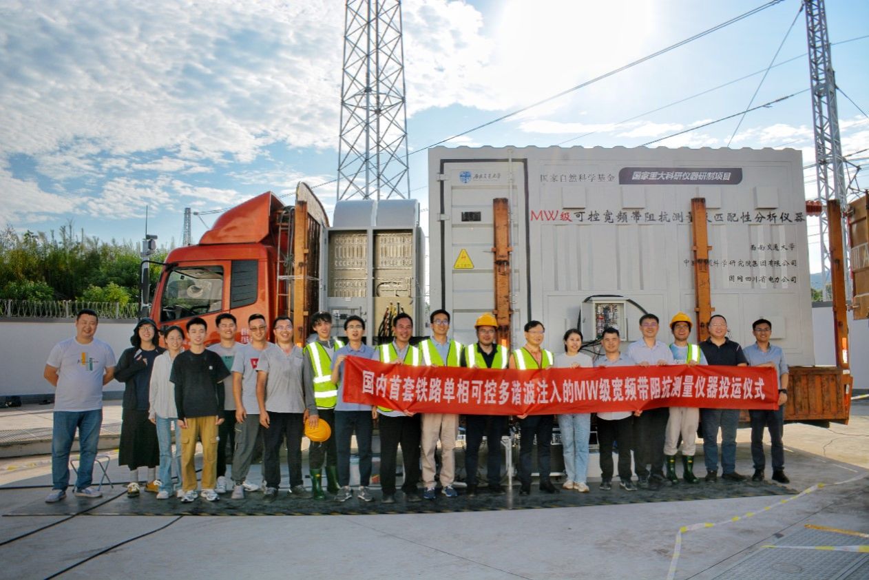 2024年7月15日,在国家重大科研仪器研制项目《MW级可控宽频带阻抗测量及匹配性分析仪器》和成都铁路局配套试验项目资助下,由澳门十大电子正规游戏网站何正友、胡海涛教授团队牵头,联合中国铁道科学研究院集团有限公司、国网四川省电力公司共同研制的MW级可控宽频带阻抗测量及匹配性分析仪器,在新开通的渝昆高铁友助村牵引变电所(重庆永川区)圆满完成了现场测试。此次现场测试得到了成都铁路局供电部、宜宾工电段、成都维管段等单位的大力支持,试验的成功标志着我国在大功率多谐波发射、宽频带阻抗测量、宽频带振荡理论的研究又向前迈出了坚实的一步。该仪器在低频谐波(1Hz)、高频谐波(20kHz)、宽频带谐波(1~1000个谐波同时发射)注入等核心指标处于领先水平,为铁路牵引供电系统、新能源并网系统、电力系统的阻抗建模与稳定性分析奠定了良好基础。该项目历时5年,顺利完成了项目立项、技术方案评审、生产研发、施工调试、现场示范等多个阶段,最终实现了仪器装置落地试验,并通过了四川省电子产品监督检验所的第三方认定。