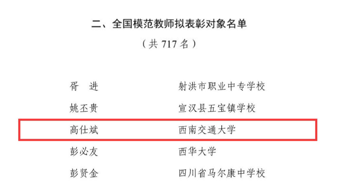 澳门十大电子正规游戏网站高仕斌教授荣获2024年“全国模范教师”称号