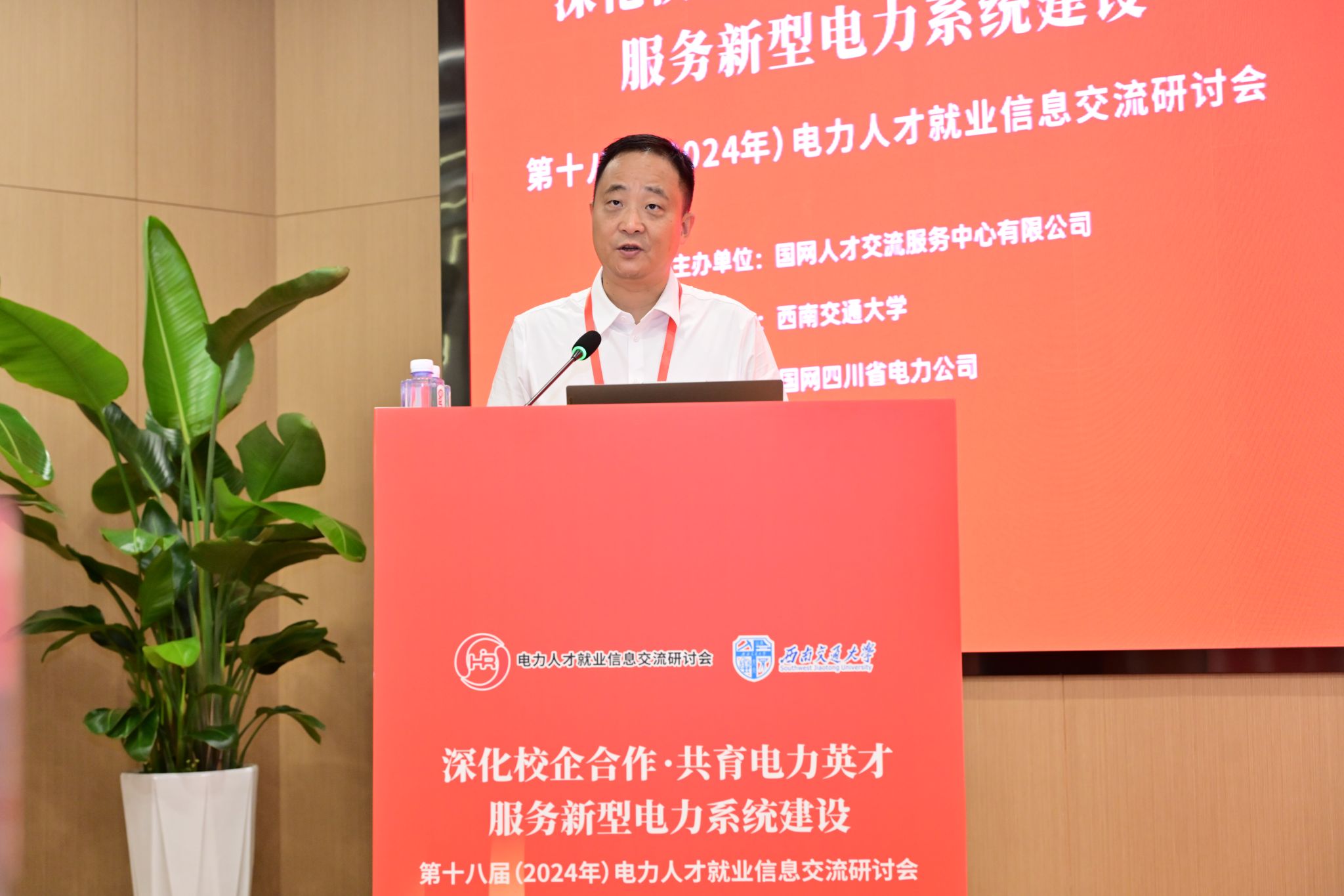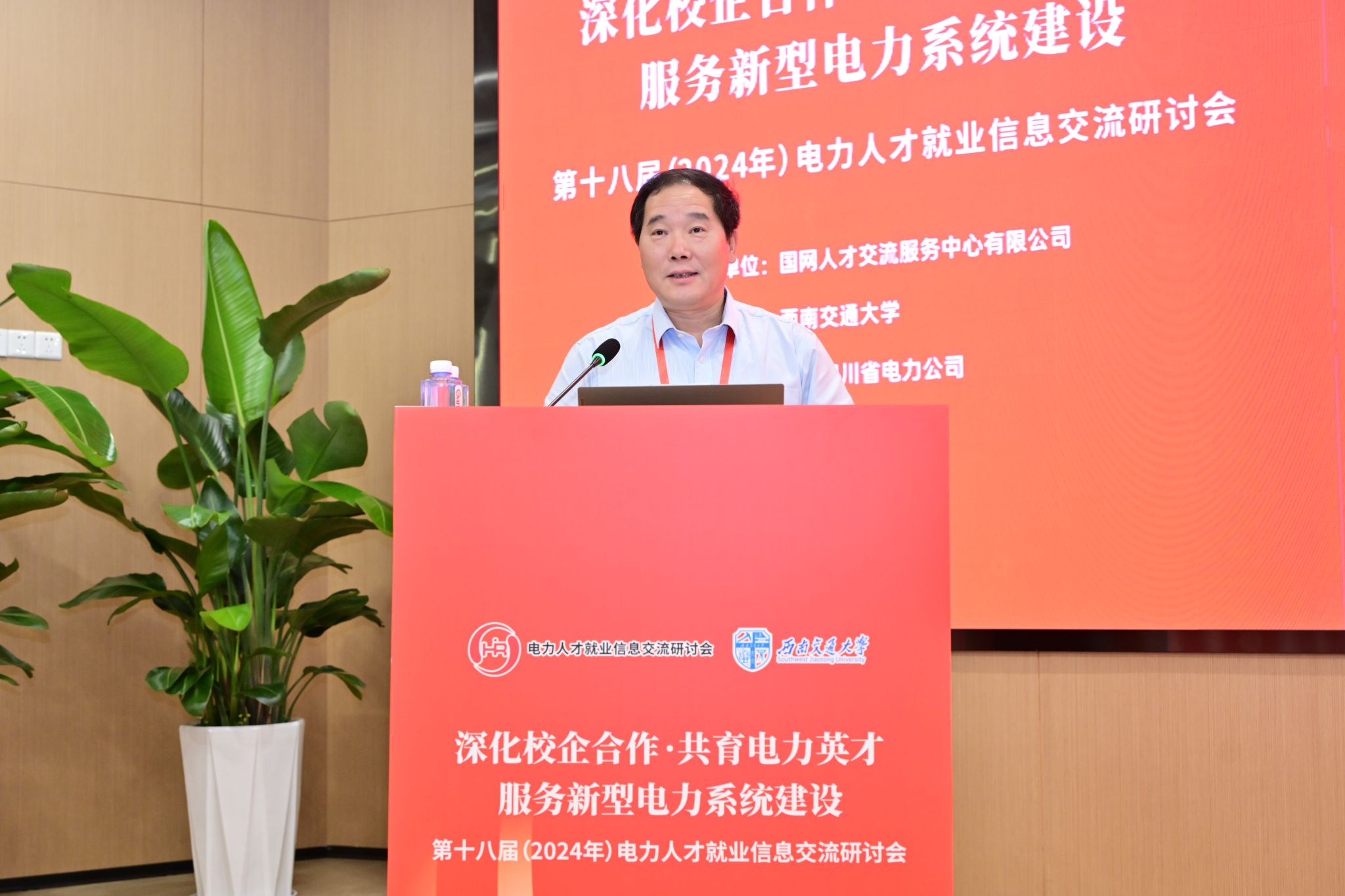2024年9月12日,第十八届电力人才就业信息交流研讨会在澳门十大电子正规游戏网站召开。本次研讨会由国网人才交流服务中心有限公司主办,澳门十大电子正规游戏网站承办,国网四川省电力公司协办,来自国网各省公司、中国电科院等47家电力企业和清华大学、武汉大学、华北电力大学等33所院校共两百余名代表参加大会。本次交流研讨是我校首次承办全国电力系统行业会议,对加强校企交流、深化校企合作,提升人才培养质量,帮助我校毕业生进一步拓宽就业渠道有重要意义。