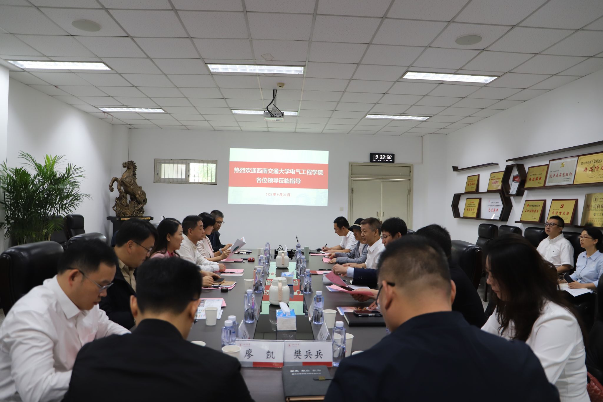 为加强兄弟院校之间的合作交流,取长补短,共建发展,2024年9月30日,学院院长马光同,党委副书记兼副院长、纪委书记王轶,副院长何晓琼、解绍锋、刘志刚,专项工作主管黄德青、廖凯,综合办主任樊兵兵,教师服务办副主任林静英等一行前往四川大学澳门十大电子正规游戏网站调研交流。四川大学澳门十大电子正规游戏网站院长肖先勇,党委书记赵昱辉,党委副书记兼纪委书记、工会主席张英敏,副院长李长松、周步祥等参与交流,双方就基层党建、科学研究、研究生培养、国际化办学、实验室及场地管理、人事管理等工作的先进经验和做法,进行了深入交流。