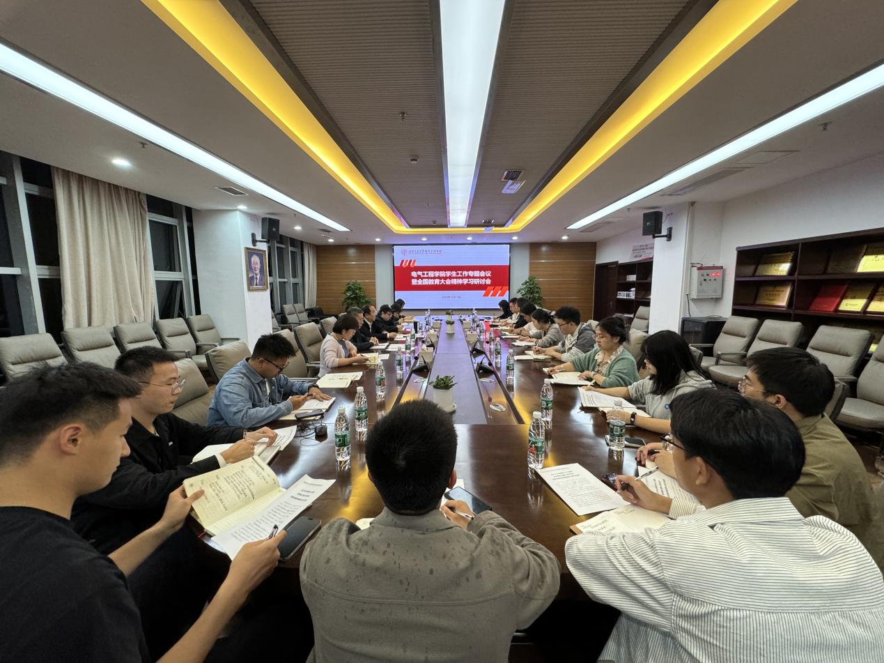 为深入学习贯彻习近平总书记重要讲话和全国教育大会精神,进一步凝聚思想共识、强化使命担当,2024年10月16日晚19时,澳门十大电子正规游戏网站学生工作组在电气馆X10212开展学生工作专题会议暨全国教育大会精神学习研讨会,学院党委书记王斌、学院党委副书记邢晓鹏、学院学生工作组全体辅导员共同参会。本次会议由学院党委副书记邢晓鹏主持。