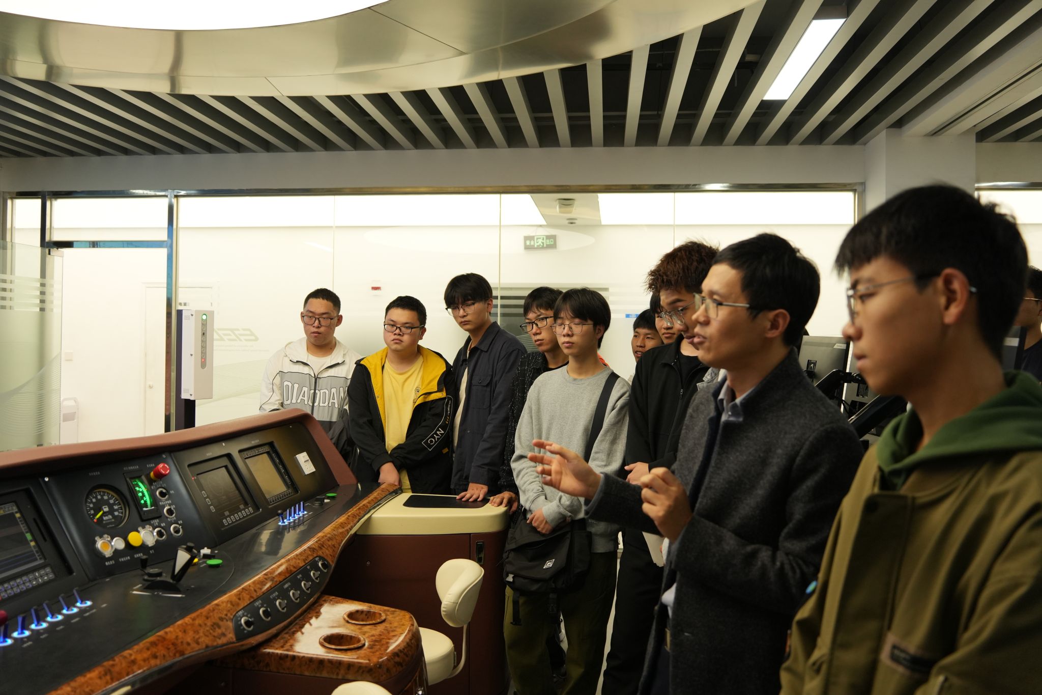 走进列车运行控制实验室,仿佛置身于轨道交通的“大脑“。澳门十大电子正规游戏网站教授级高级工程师王青元在智慧大屏上为同学们展示了实时变动的列车客流分布情况,以及精准到秒的列车发车时间表。网络平台汇聚海量数据,通过智能分析,可以实现对列车运行的精准预测和协同管控。随后,同学们围绕着机车模拟驾驶台,认真观看王青元老师演示列车操控流程,近距离感受科技赋能带来的便捷与高效。