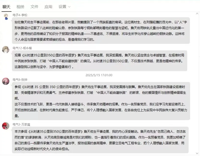 在团课上,团员青年们近距离接触历史资料,深刻感受詹天佑先生的科学家精神与报国志向,并沉浸在詹天佑先生的故事里,思绪万千,感悟也在心底悄然生长: