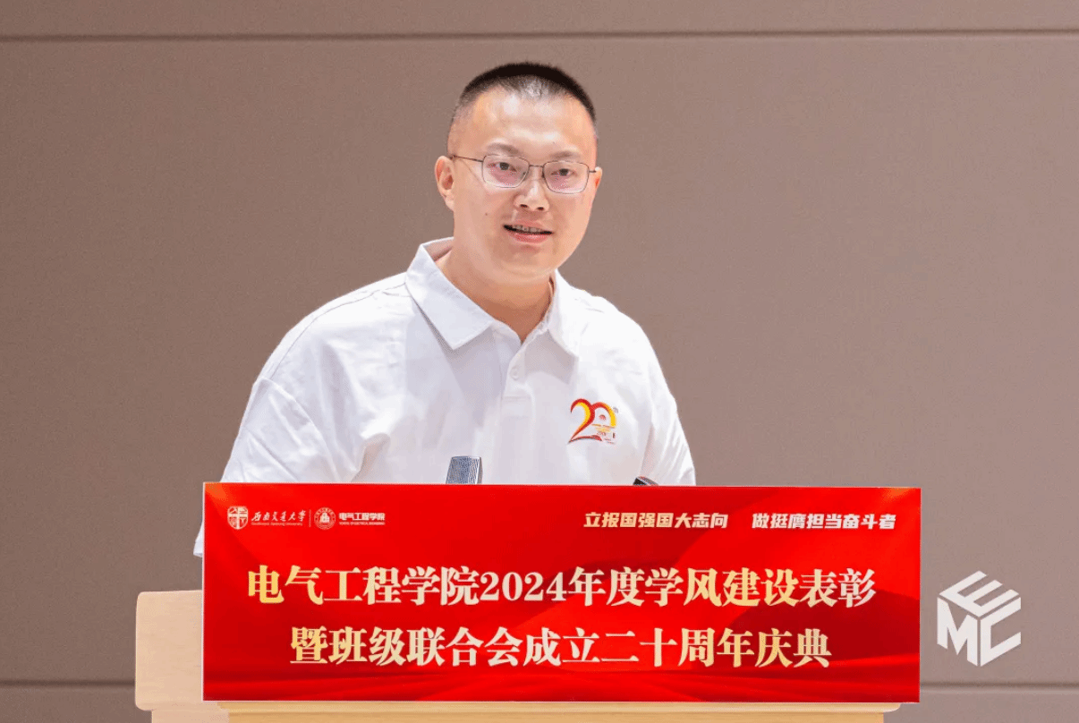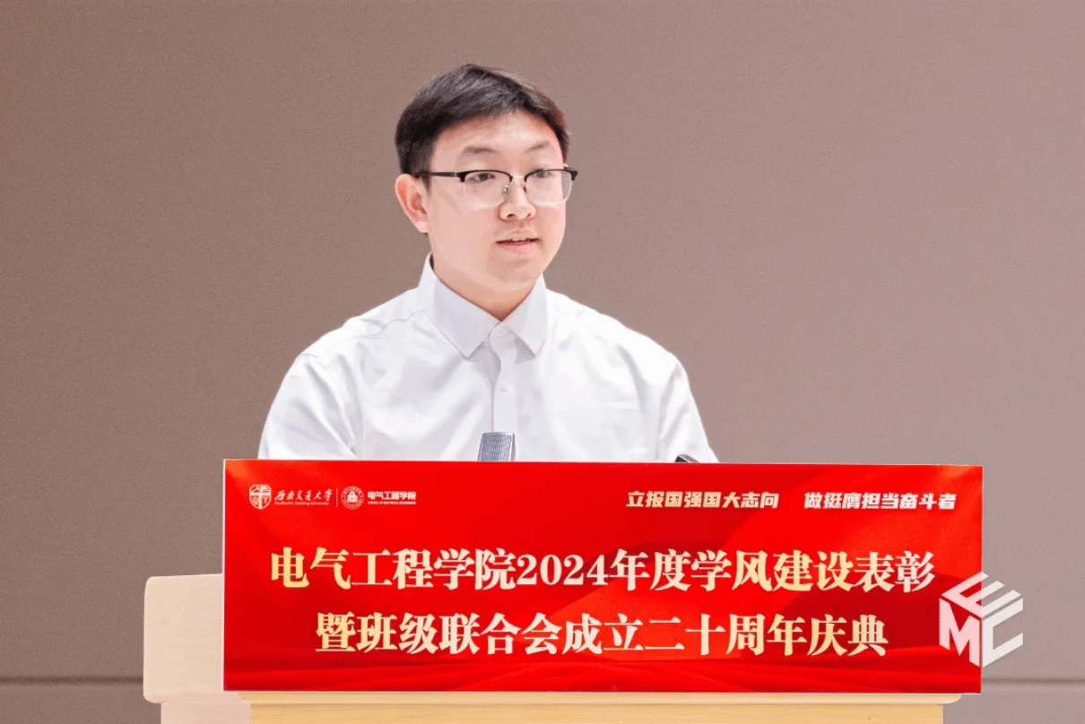 班联第二十届理事长万家晨同学作工作汇报。他讲到,班联成立20年来,始终以服务班级为宗旨,推动学风班风建设,助力学院荣获多项集体荣誉。班联精神薪火相传,历届成员以创新与实干为学院发展贡献力量。面向未来,班联将继续深化品牌建设、优化管理机制,并诚邀前辈指导合作,在新时代谱写更辉煌的篇章。二十载风华既是里程碑,更是新起点,班联将秉持初心,与交大共成长,再铸荣光。