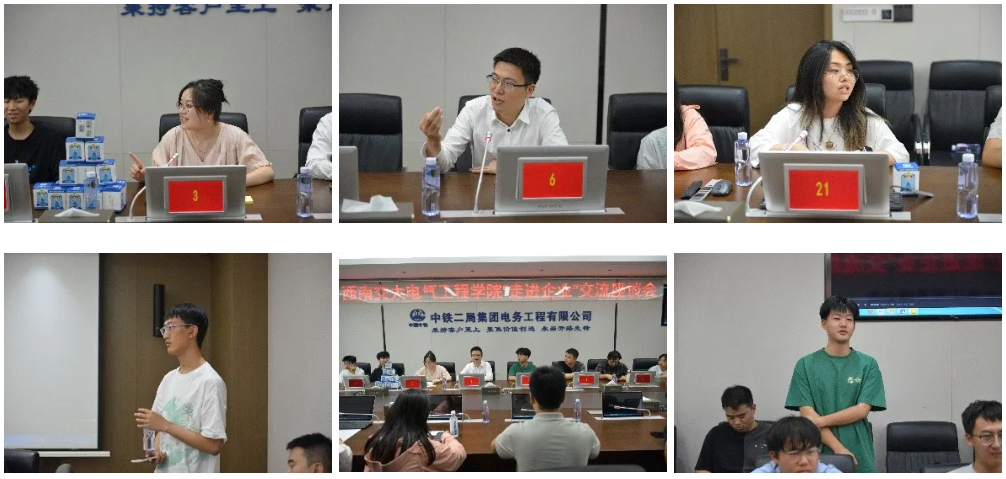 在中铁二局电务公司,师生们与公司相关部门负责人和交大校友开展趣味小游戏及座谈交流分享会,同时还为师生们发放文创盲盒。学院师生与公司相关部门负责人就企业概况、人才培养、校企共建、择业就业等方面进行了深入交流。同学们重点咨询了中铁二局电务公司的求职标准、晋升空间和入职后的发展路线等相关情况。