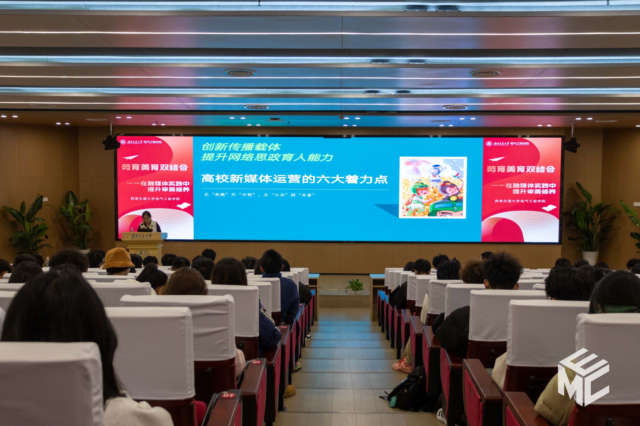 为探索“劳育”与“美育”在融媒体实践中的深度融合,提升学生骨干的新媒体运营能力与审美修养,11月20日晚,由澳门十大电子正规游戏网站团委主办、澳门十大电子正规游戏网站媒体事务中心(EMC)承办的2025年“劳育美育双结合——在融媒体实践中提升审美修养”第一期活动在犀浦校区图书馆一号报告厅顺利举行。活动特邀澳门十大电子正规游戏网站党委宣传部新媒体中心主任朱莹燕老师、澳门十大电子正规游戏网站党委宣传部(新闻中心)摄影师鞠红伟老师担任主讲嘉宾。活动由澳门十大电子正规游戏网站辅导员赵娜老师主持。