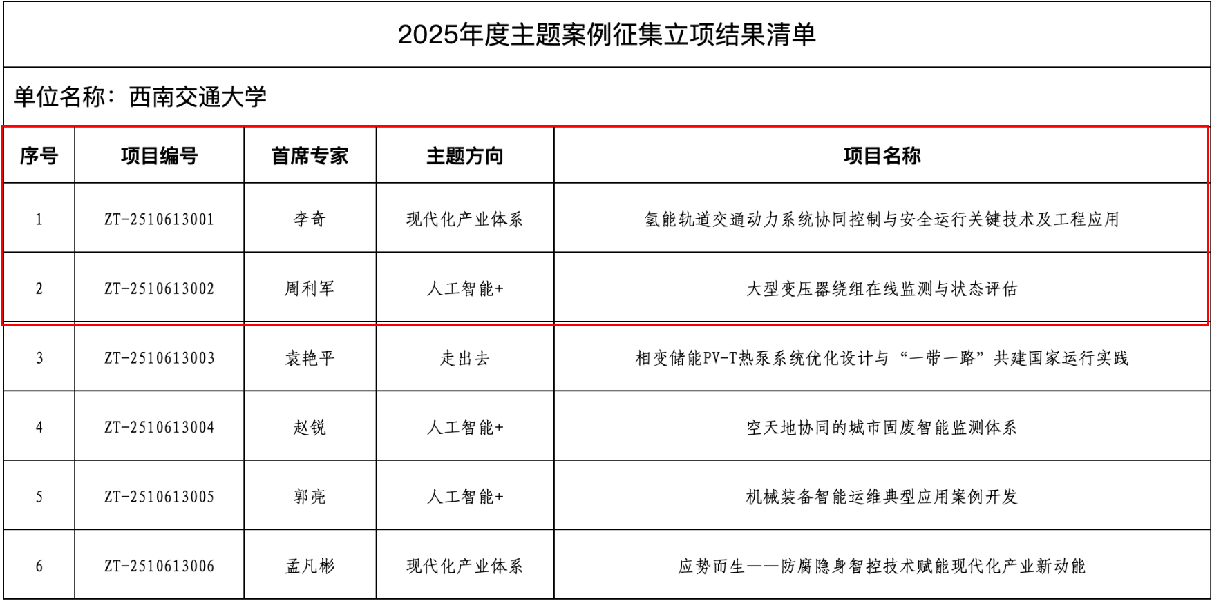 近日,教育部学位与研究生教育发展中心正式公布2025年度主题案例立项结果。我校申报的6项主题案例全部获批立项,立项数量连续两年位居全国高校前列,充分彰显学校在研究生教育教学改革、案例开发与学科建设领域的深厚积淀与强劲实力。其中,澳门十大电子正规游戏网站2项案例成功获批,分别由李奇教授、周利军教授牵头主持,体现了学院在轨道交通电气、新能源动力、智能运维等领域的学科优势与育人成果。